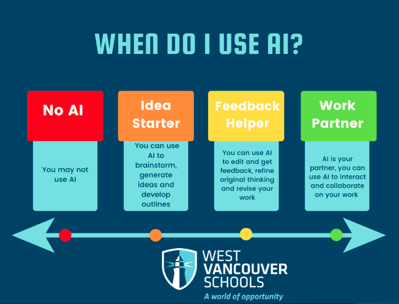 We intentionally started here as adult learners because this reflects the expectations for AI use in our classrooms with our students. Guidelines are critical to ensure ethical and responsible usage of AI tools. Users of all ages need to understand the expectations and established parameters for AI engagement in learning experiences. Blanket bans on AI are counterproductive; in today’s digital world, ignoring its presence is unrealistic and avoiding engagement is educationally negligent. Guidelines help AI users maintain academic integrity by encouraging them to critically evaluate outputs and to use AI to complement their thinking, rather than replace creativity or individuality. When we know what’s expected when using AI in our learning, it’s easier to stay organized and make things more efficient where it makes sense.