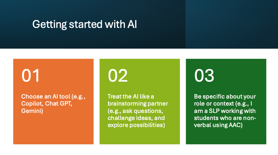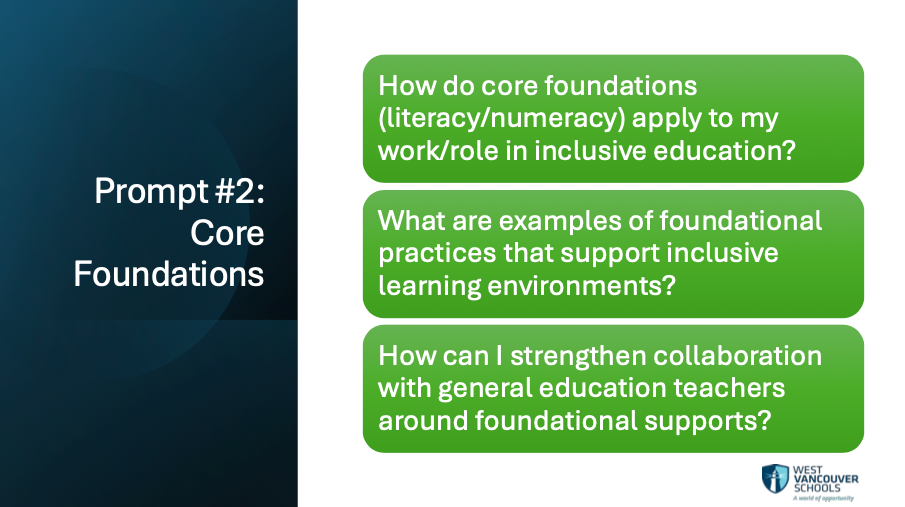 Why start here? Because grounding AI exploration in our shared commitments ensures that the technology serves our values, not the other way around. It also gives each professional a meaningful lens for thinking about how AI can support inclusive education.