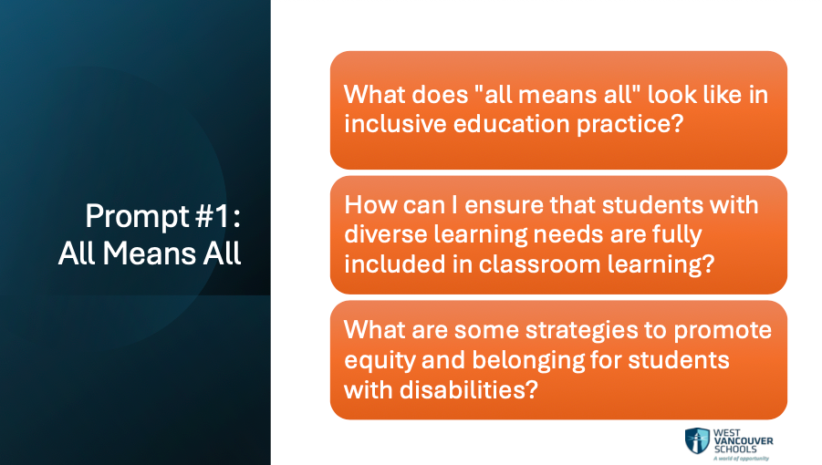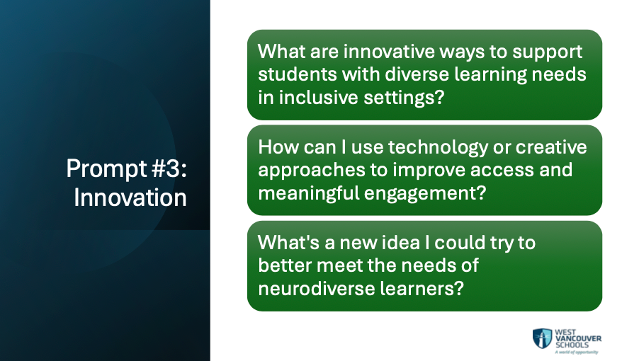 Our inclusive education team is made up of an incredible group of intelligent, curious professionals. By engaging with prompts tied to district priorities, they weren’t just learning about AI, they were shaping how it could enhance equity, access, and personalized learning for all students.