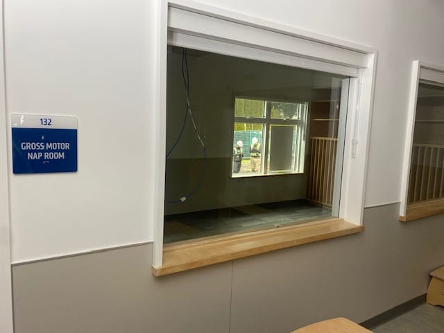Design features in our early childhood education centre that promote movement include the open‑concept design, which features walk‑through kitchens and uncluttered community learning spaces, alongside dedicated, well‑lit, airy, quiet rest spaces. The furniture selections, again, were carefully chosen, with our nap mats aligned with West Vancouver Schools’ brand colours, and our infant cribs selected with double peek‑a‑boo windows so children can see their friends when it is time for rest.