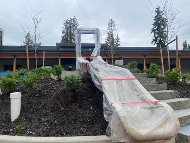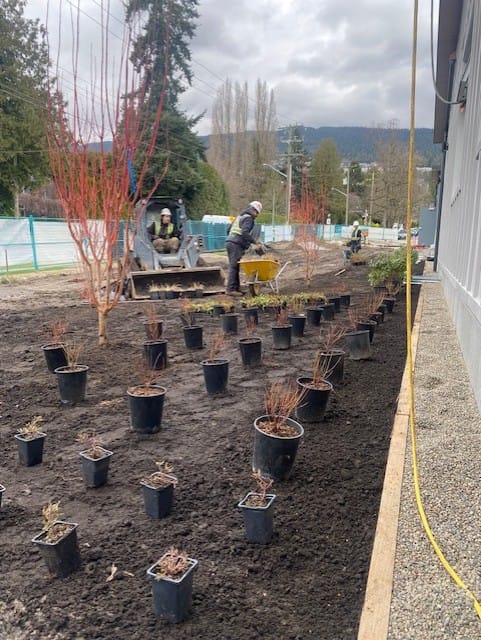 From a new paved and well‑lit community pathway between our Early Childhood Education Centre to the adjacent family housing development, Kiwanis Village West and our school board office, to the carefully considered planting selections, intention guided every aspect of our outdoor design. The landscaping reflects West Coast environmental principles that support the local ecosystem while responding to the realities of climate change. No considerations were left by the wayside as we created an outdoor learning environment for children to enjoy, and treasure, for decades to come.