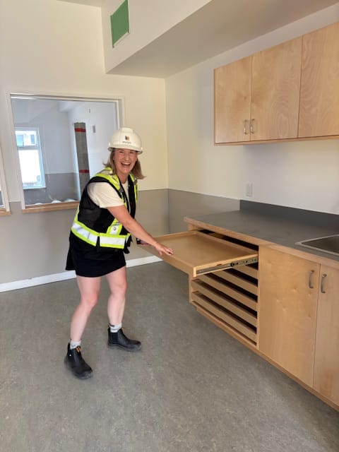 The interior design selections were truly a passion project for my colleague Laine Anderson. Her vision and dedication are central to the success of creating a beautiful, forever build for the children and families of West Vancouver. Despite the building surprises we encountered along the way, Laine never lost sight of the importance of high‑quality, educationally innovative, and thoughtful design.