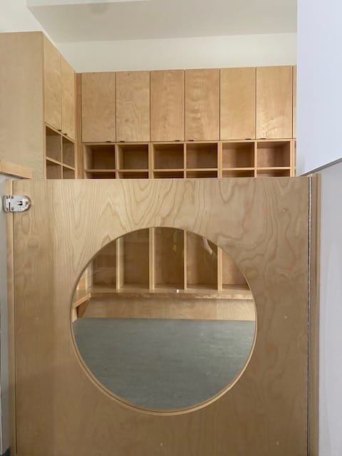 Another favourite interior touch in our West Vancouver Schools Early Childhood Education Centre is our small wooden circular doors. I first encountered doors like these many years ago in another local child care centre and remember being struck by their unique design. More recently, Laine came across them during a visit to Frog Hollow Neighbourhood House and returned with excitement, sharing her discovery with me. I was thrilled, having long forgotten about these beautiful doors, and delighted that her find brought them back as a central design feature woven throughout our building.