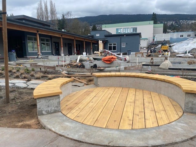 From a new paved and well‑lit community pathway between our Early Childhood Education Centre to the adjacent family housing development, Kiwanis Village West and our school board office, to the carefully considered planting selections, intention guided every aspect of our outdoor design. The landscaping reflects West Coast environmental principles that support the local ecosystem while responding to the realities of climate change. No considerations were left by the wayside as we created an outdoor learning environment for children to enjoy, and treasure, for decades to come.
