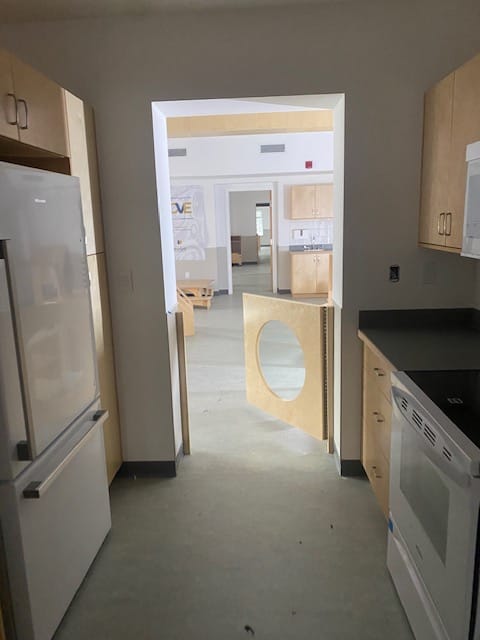 Our main entrance was purpose‑built by the amazing team at Nuqo to reflect our commitment to creating a welcoming space for all who enter our West Vancouver Schools Early Childhood Education Centre. Upon entry, to the right, is our community room, which will serve as a multi‑purpose space for intergenerational, family‑focused programming, as well as before‑ and after‑school care. We are excited about the slate of programming coming together to serve our community in new and innovative ways.